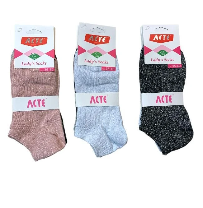 Calzino Donna Lurex corto minicalza cotone Acte 2026 cotone elasticizzato corto minicalza fantasie assortite