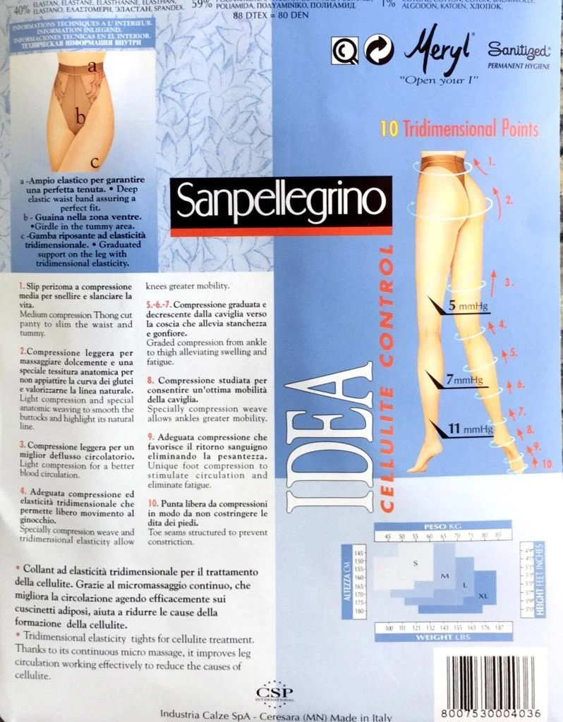 Collant Donna Idea Celluline control Sanpellegrino a complessione graduata con ampio elastico in vita per una perfetta tenuta e guaina nella zona ventre con dietro a perizoma