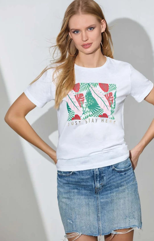 Maglia Donna moda Jadea 4510 T-shirt in 100%cotone con stampa floreale .