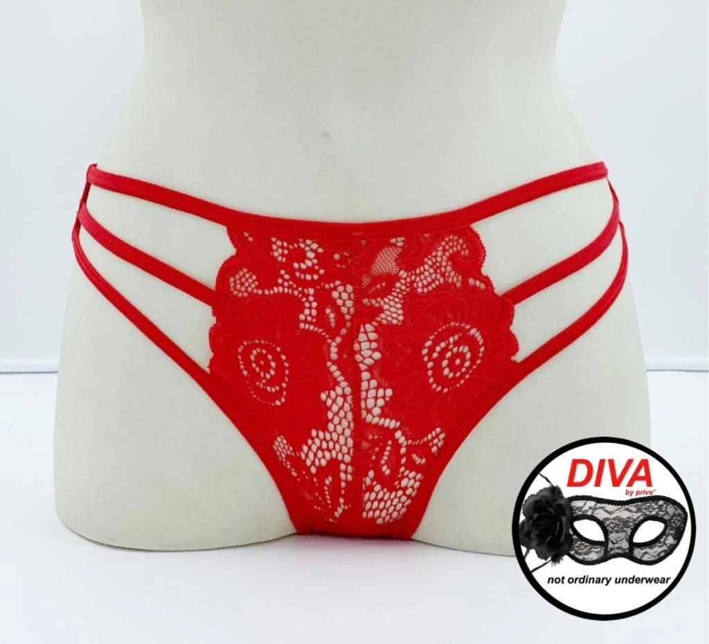 Perizoma Sexy Rosso Diva By Prive’ 92001 in cotone e pizzo elasticizzato con lacci laterali