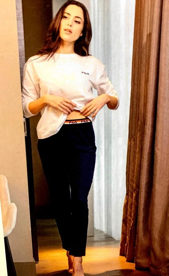 Offerta outlet campionario Pigiama Donna Fila 4073 cotone caldo invernale morbido e confortevole co maglia girocollo tinta unita con piccola scritta e pantalone tinta unita con elastico con scritta tessuto elasticizzato ottima vestibilita’ e massimo confort