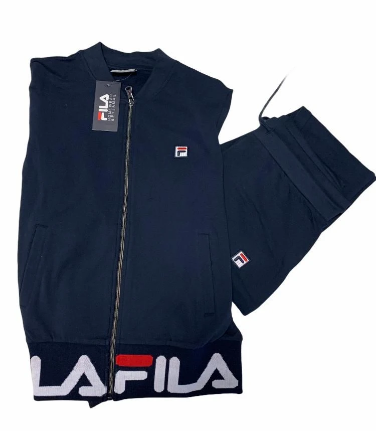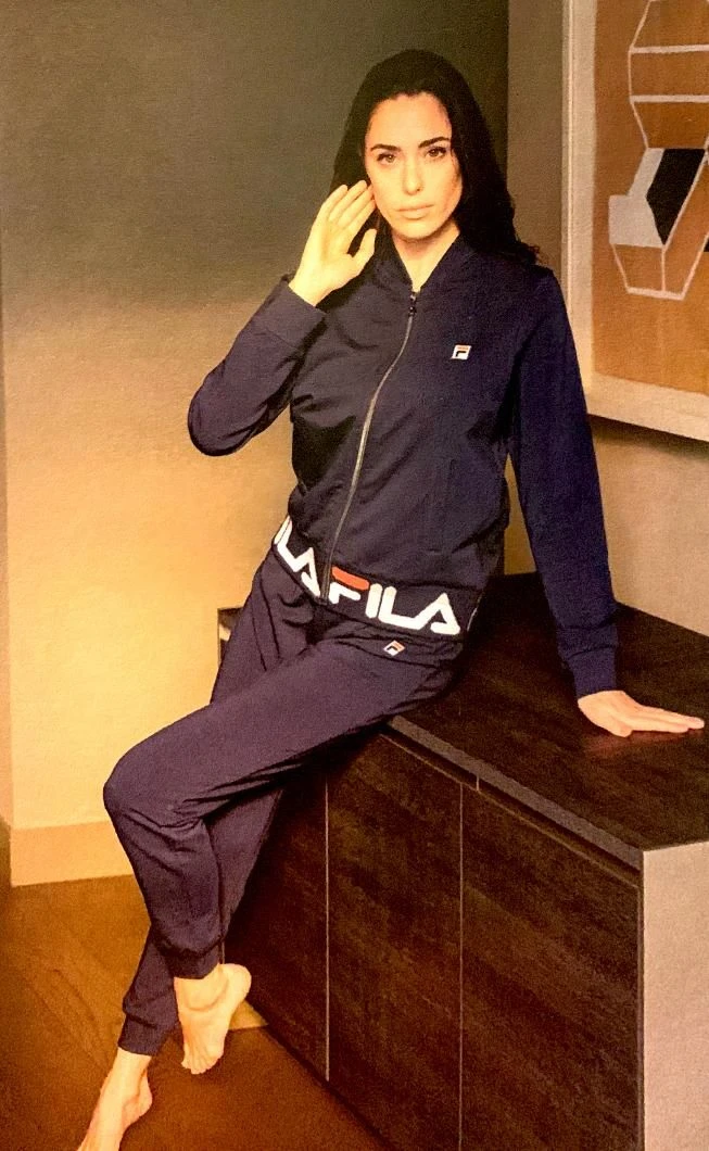 Offerta outlet Campionario Tuta Donna Fila 4065 cotone felpato invernale con giacca tutta aperta con lampo con logo piccolo laterale e pantalone con laccio in vita e logo piccolo laterale tessuto elasticizzato massimo confort ed ottima vestibilita’