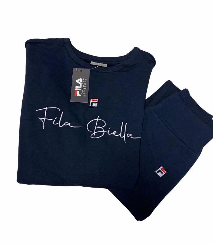 Offerta outlet Campionario Tuta Donna Fila 4057 cotone felpato Maglia girocollo tinta unita con scritta sul davanti con bordo in vita e ai polsi , pantalone tinta unita leggings tessuto elasticizzato massimo confort ed ottima vestibilita’ Composizione:95%cotone 5%elastan